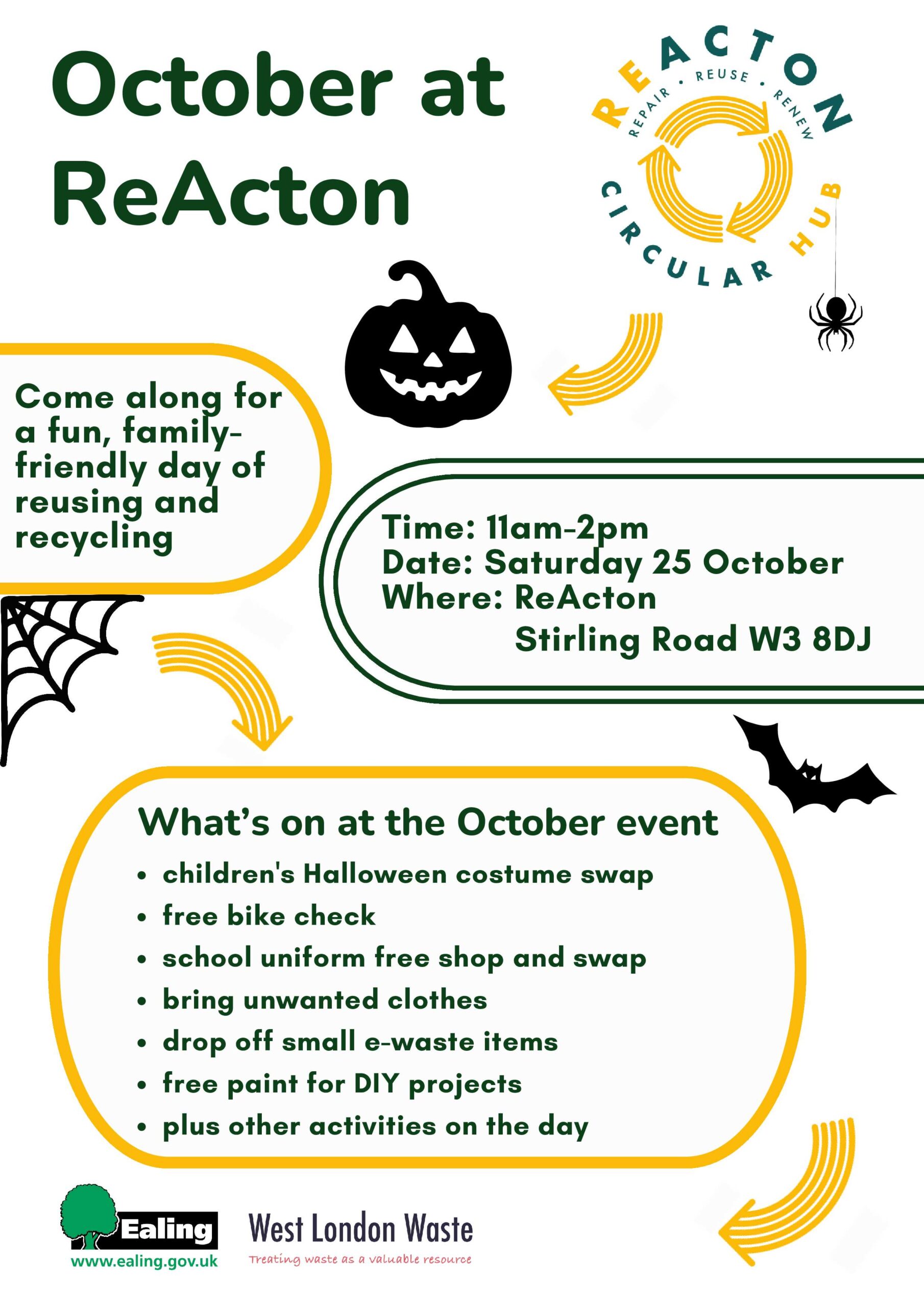 Join the spooky Halloween costume swap at ReActon as well as many other activities that helps us to reuse more and waste less.