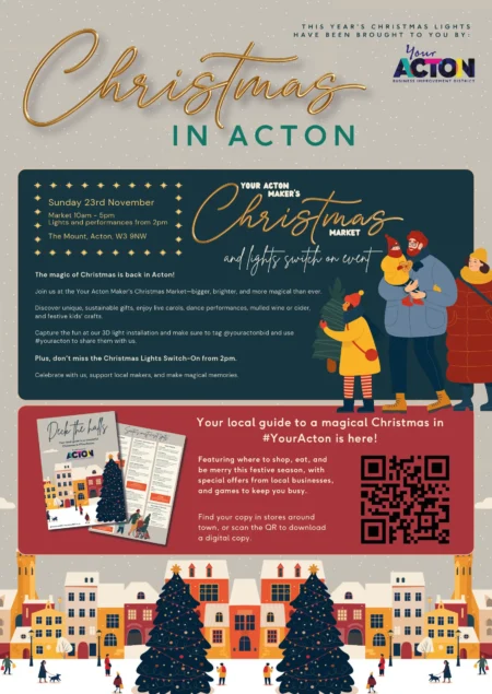 We are all about Christmas this year, with our Christmas Guide, workshops, markets and Switch on the lights event. So, there are no excuses – breath in the Christmas spirit and enjoy, shop local in Your Acton! Find out more below and download our guide.